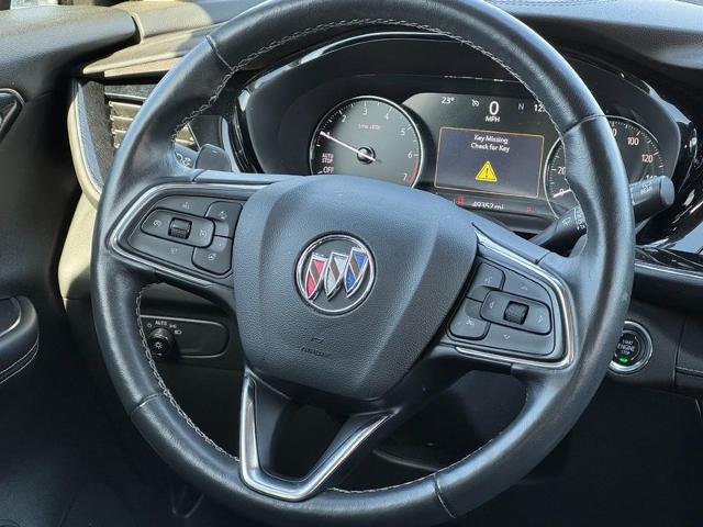 Leather heated front bucket memory seats, backup camera, telematics, WiFi hotspot, dual-zone automatic climate control with individual climate settings, push button start, remote vehicle start system, power / hands free open and close liftgate, 4DR sport utility, 2.0L Turbo : 4-cylinder / SIDI, 9 speed automatic, FWD, 18" machined aluminum wheels with light silver metallic finish, real cross traffic alert system, lane change alert with side blind zone alert, rear parking assist, 10.2" diagonal Buick Infotainment System includes multi-touch display / AM/FM/SiriusXM stereo / Bluetooth streaming audio for music and most phones wireless Apple Carplay/wireless Android Auto for compatible phones / advanced voice recognition / in-vehicle apps / personalized profiles for infotainment and vehicle, OnStar Equipped (service required), heated leather wrapped steering wheel mounted audio and cruise controls, daytime running lights, theft deterrent system, following distance indicator, forward collision alert, StabiliTrak : stability control system with traction control, and tire pressure monitoring system. Tired of the same dull drive? Well change up things with this rip-roaring 2023 Buick Envision Essence. Does it all! One of the best things about this Envision is something you can't see, but you'll be thankful for it every time you pull up to the pump. Thanks for looking hope to hear from you soon.