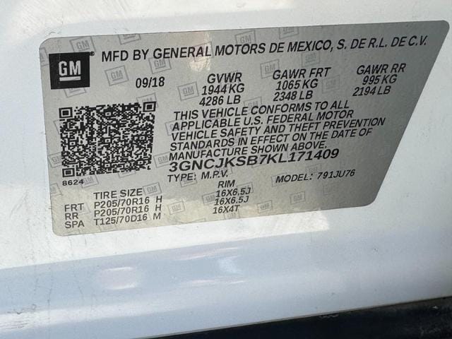 Cloth front bucket seats, WiFi hotspot, back up camera, telematics, 4DR sport utility, ECOTEC Turbo 1.4L variable valve timing DOHC 4-cylinder sequential MFI, 6-speed automatic, FWD, 16" aluminum wheels, power door mirrors, split folding rear seat, Illuminated and remote keyless entry, audio system : Chevrolet Infotainment System with 7" diagonal color touch-screen / AM/FM stereo voice pass-through technology / includes Bluetooth streaming audio for music and select phones; featuring Android Auto and Apple CarPlay capability for compatible phone, steering wheel mounted audio and phone interface controls, ride and handling suspension, traction control, dual front and side impact air bags, StabiliTrak : stability control system includes traction control, tire pressure monitor system and over head air bag. Car buying made easy! Be the talk of the town when you roll down the street in this 2019 Chevrolet Trax LS. This terrific Chevrolet is one of the most sought after used vehicles on the market because it NEVER lets owners down. Thanks for looking hope to hear from you soon.