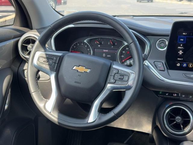 Leather heated front bucket seats, backup camera, keyless open and start, dual-zone automatic climate control with individual climate settings, remote engine start, 4D sport utility, 3.6L V6, FWD 18" grazen metallic aluminum wheels, power heated side mirrors, roof rack, deep tinted windows, power liftgate rear access, audio system : Chevrolet Infotainment 3 Plus system 10.2" diagonal HD color touchscreen / AM/FM stereo / Bluetooth audio streaming for 2 active devices / Apple CarPlay and Android Auto capable / enhanced voice recognition / in-vehicle apps / cloud connected personalization for select infotainment and vehicle settings. subscription required for enhanced and connected services after trial period., 6 speakers system, OnStar Equipped (service required), cruise control, ride and handling suspension, engine control : stop/start system, ABS brakes, automatic emergency braking, lane change alert with side blind zone alert, rear cross traffic alert, rear park assist with audible warning, StabiliTrak : stability control system with traction control, dual front impact air bags, tire pressure monitor and tire fill alert provides audible alerts. Be the talk of the town when you roll down the street in this 2023 Chevrolet Blazer LT. Must SEE - this one won't last long at this price. Well Maintained. Thanks for looking hope to hear from you soon.